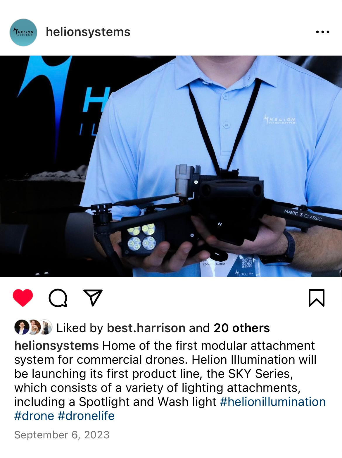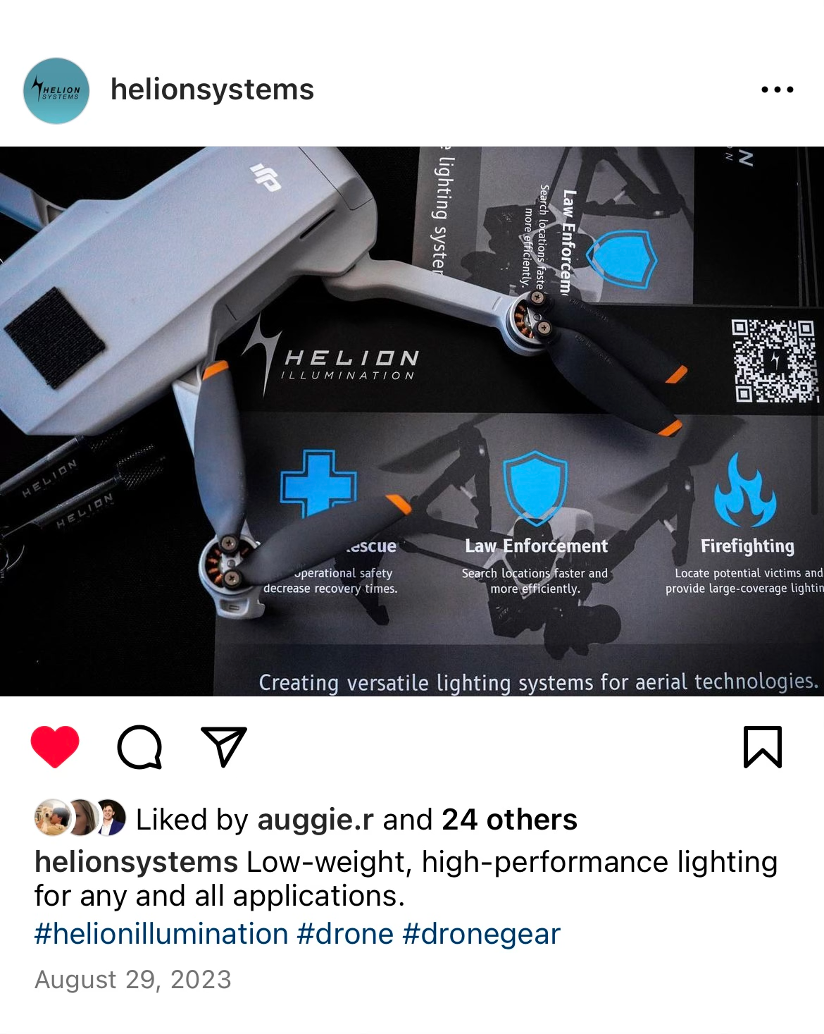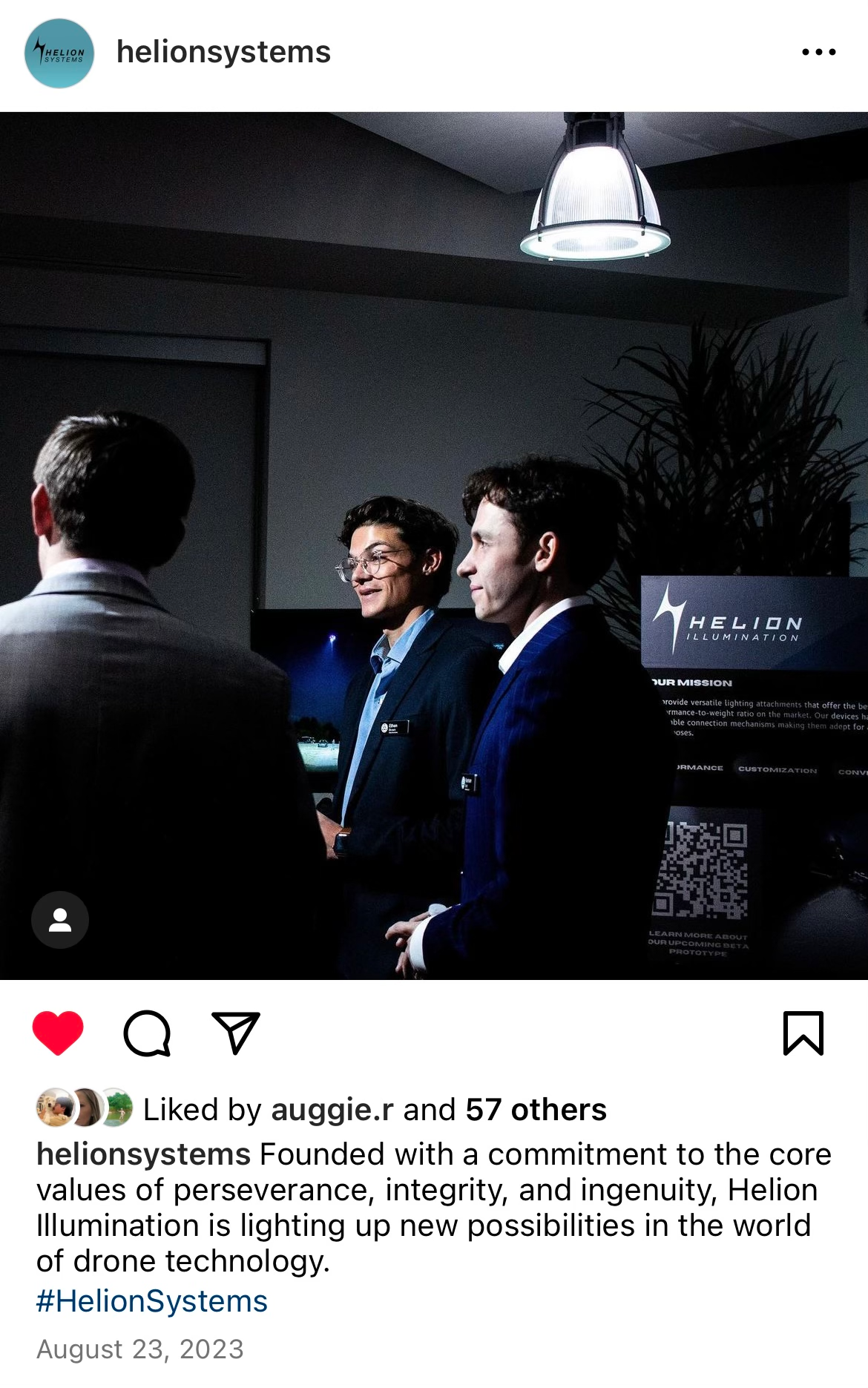 I played a key role in launching Helion Systems, a drone attachment company, by managing its social media platforms, designing print materials, and developing marketing strategies to establish a strong brand presence and drive engagement.